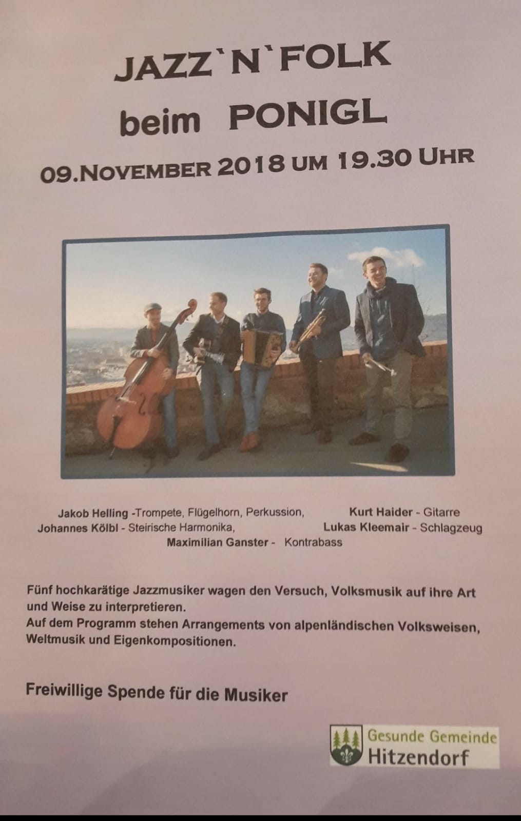 Jazz beim Ponigl 18. Oktober 2024 19:30